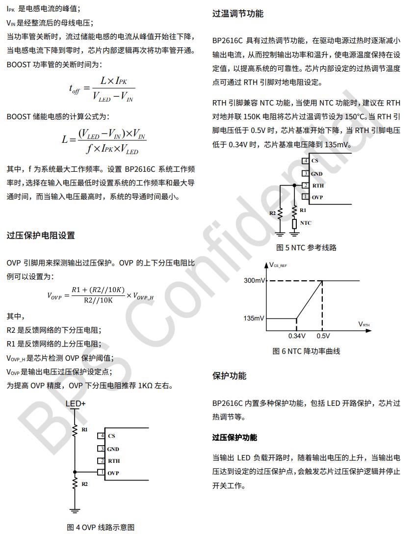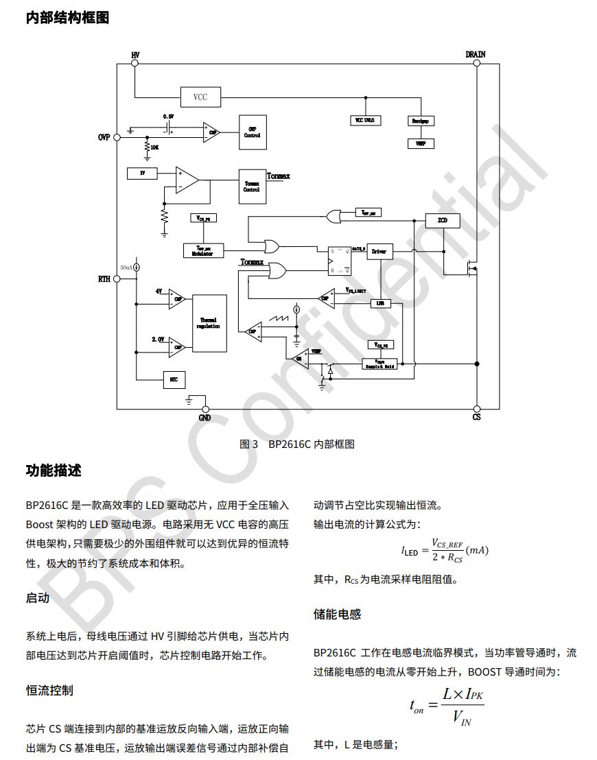 BP2616是一款高效率、高PF值的LED驅(qū)動(dòng)芯片。芯片工作在電感電流臨界連續(xù)模式,適用于全壓輸入Boost架構(gòu)的LED驅(qū)動(dòng)電源。BP2616芯片采用先進(jìn)的柵極驅(qū)動(dòng)和高壓供電方式,只需要很少的外圍元件,即可實(shí)現(xiàn)優(yōu)異的恒流特性,極大的節(jié)約了系統(tǒng)成本和體積。BP2616具有多重保護(hù)功能,包括LED開(kāi)路保護(hù)(過(guò)壓保護(hù))、芯片溫度過(guò)熱調(diào)節(jié)等。BP2616采用SOP-8封裝。