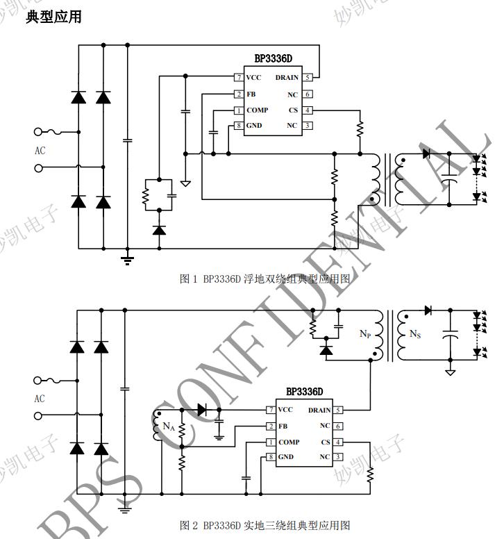 BP3336D 內(nèi)置輸入電壓和負(fù)載補(bǔ)償線路,可以實(shí)現(xiàn) 極佳的線性調(diào)整率和負(fù)載調(diào)整率。 BP3336D 可以支持單繞組浮地 Buck-boost 或者兩 繞組/三繞組的隔離 Flyback 拓?fù)洹?nbsp; BP3336D 采用 SOP-8 封裝。