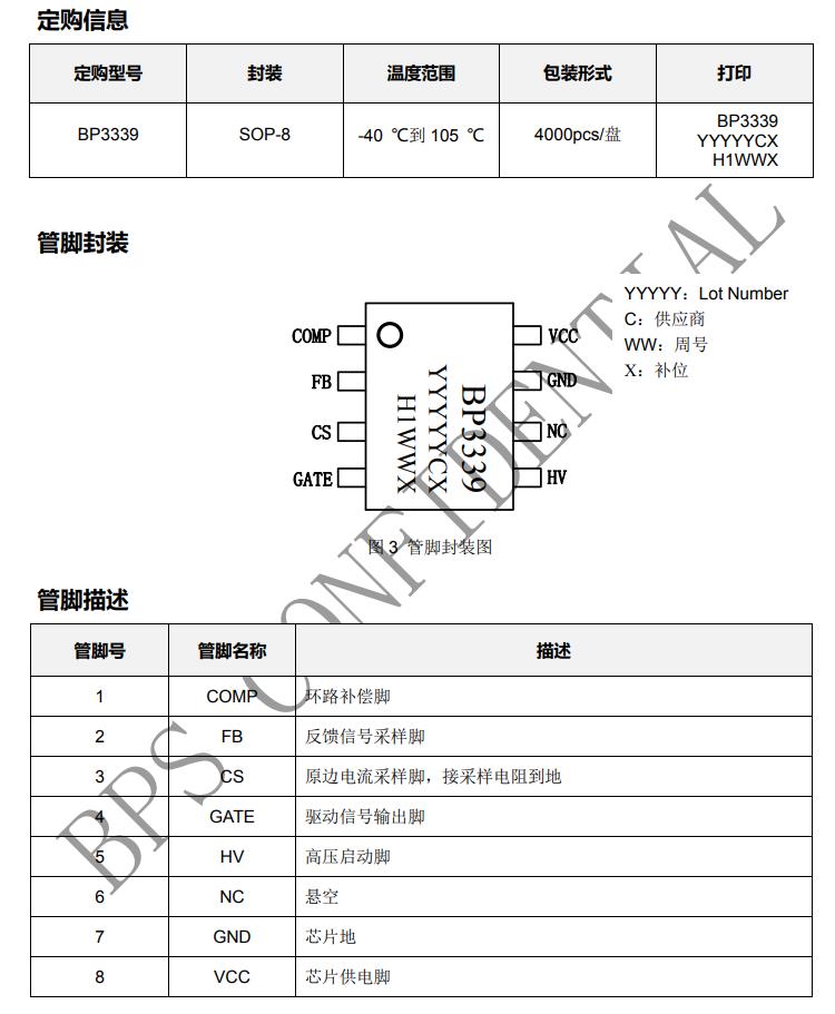 | BP3339 | SOP8 | / | / | Y | OTP/OVP | - | - |