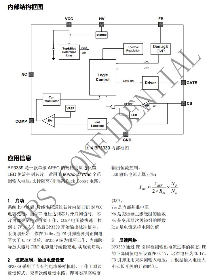 BP3339 是一款單級 APFC 的高精度原邊反饋LED 恒流控制芯片,適用于 90Vac-277Vac 全范圍輸入電壓。 BP3339 芯片采用固定導(dǎo)通時(shí)間的控制機(jī)制,能夠?qū)崿F(xiàn)功率因數(shù)校正的高 PF。內(nèi)置 THD 優(yōu)化模塊進(jìn)一步降低了 THD。開關(guān)工作在臨界導(dǎo)通模式,降低開關(guān)損耗及 EMI,提升變壓器的利用率。