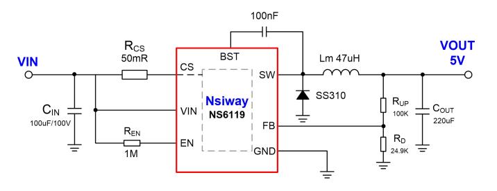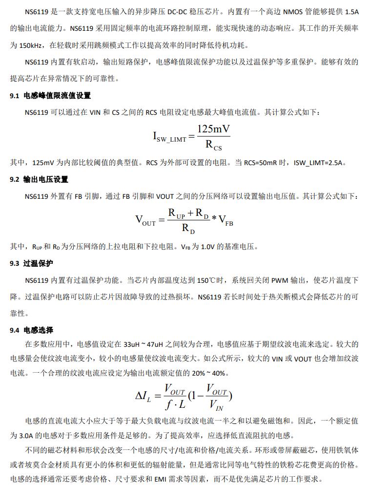 NS6119 是一款支持寬電壓輸入的異步降壓 DC-DC 穩(wěn)壓芯片。內(nèi)置有一個(gè)高邊 NMOS 管能夠提 供 1.5A 的輸出電流能力。NS6119 采用電流模式的環(huán) 路控制原理,實(shí)現(xiàn)了快速的動(dòng)態(tài)響應(yīng)。芯片還集成 有過溫保護(hù),輸出短路保護(hù)和輸入欠壓保護(hù)等多重 保護(hù)功能。