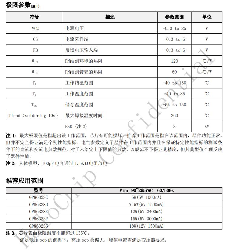 GP8632SX是一款恒壓、恒流的原邊反饋谷底導(dǎo)通控制芯片,適用于充電器和適配器。GP8632SX采用特有的輸出線損補(bǔ)償技術(shù),可以有效的補(bǔ)償輸出電流在輸出線上的損耗壓降。GP8632SX內(nèi)置環(huán)路補(bǔ)償電路,無(wú)需外圍補(bǔ)償電路,系統(tǒng)具有良好的穩(wěn)定性。GP8632SX可以實(shí)現(xiàn)良好的恒壓、恒流特性,滿足待機(jī)功耗小于75mW。GP8632SX具有多重保護(hù)功能,包括開(kāi)路保護(hù),過(guò)壓保護(hù),短路保護(hù)等功能。GP8632SX采用SOP7封裝