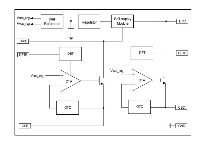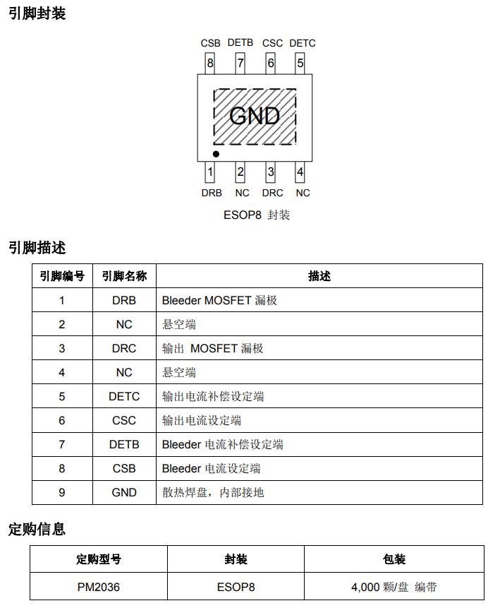 PM2036內(nèi)部集成了兩個固定恒流源,兩個恒流 源之間的關(guān)系可以靈活配置,既可以獨(dú)立使用, 又可以并聯(lián)使用。獨(dú)立使用時,PM2036可以實(shí)現(xiàn) 單顆IC同時控制兩路LED,滿足可控硅調(diào)光的照 明應(yīng)用;關(guān)聯(lián)使用時,PM2036有著異常靈活的應(yīng) 用方案,既可以兼顧高功率因數(shù),也可以配置成 功率因數(shù)大于0.9的光電一體化方案,可以使用傳 統(tǒng)可控硅調(diào)光器調(diào)光。